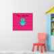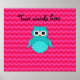 Cute turquoise/aqua/teal owl with a pink chevrons pattern background