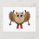 Cute Owl Skiing Cartoon Holiday Postcard