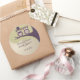 An adorable cute owl wedding stickers with a bride owl and a groom owl on top a branch in a tree. The colours are purple and green tones and is very fun and adorable. Great for a casual wedding.