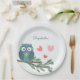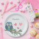 Cute Owl with eyeglasses on a branch custom name Paper Plate