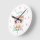Cute Owl with Pink Bow, Girls Room Personalized Round Clock