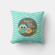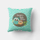 Cute Owls; Aqua Green Chevron Throw Pillow