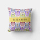 Cute Owls, Owl Pattern, Colourful Owls, Your Name Throw Pillow