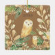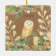 Cute Owls Pine Watercolor Christmas Ceramic Ornament