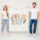 A cute painted hello fall themed blanket in earthy fall colours and hand painted style lettering in orange, terracotta and gold hues. Create a cozy vibe at home this fall and greet the season with a bit of a cozy hygge sensibility.