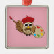 Cute Painter Owl Cartoon Metal Ornament
