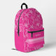 This personalized backpack features a tropical palm tree design in hot pink, magenta and fuchsia shades of pink. Personalize the script typography with your name or monogram.