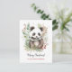 Cute Panda Baby Rustic Christmas botanicals postcard. Rustic watercolors and lineart style black and white cute panda bear with green and white shawl and beautiful winter botanicals. Personalized text with a lovely trendy script.
