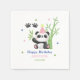 Cute baby panda kids birthday napkins featuring an adorable panda wearing party hat with a panda footprint, bamboo and stars at the background.