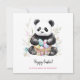 Cute Panda Bear Rustic Easter botanicals Easter card. Rustic watercolors and lineart style black and white panda bear with beautiful spring botanicals and Easter eggs. Personalized text with a lovely trendy script.