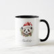 Pretty Panda Bear Santa Merry Christmas mug. Kawaii style black, white and red colours panda bear with Santa hat and Christmas botanicals. Personalized text.