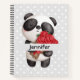 Spiral notebook with an adorable watercolor drawing. An adorable black and white panda bear carrying a bouquet of roses.