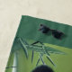 This artwork features an AI created cute panda bear mother with her two cubs in a bamboo forest. Beautiful wildlife towel for kids.