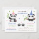 Cute baby panda kids birthday invitation featuring two adorable panda wearing party hat with a panda footprint and surrounded by stars.