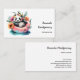 Business cards with an adorable summery image. A watercolor design with a black and white panda sitting in a swimming ring in the water. Surrounded by pretty wildflowers. A totally chill bear.