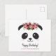 Cute panda Happy Birthday personalized pink floral Postcard