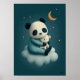A sweet and calming nursery illustration of a cute panda hugging a small toy while sitting on a soft cloud under the moon and stars. This gentle bedtime artwork creates a peaceful atmosphere, making it perfect wall art for baby rooms, nurseries and children’s spaces designed for comfort and dreams.