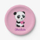 Cute Panda with a Pink Heart Personalized Name Mel Paper Plate