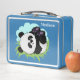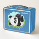 This is a standard metal lunchbox that appears to work just fine. We designed this box ourselves with an uploaded photo and custom text on the front and back. It looks absolutely beautiful except the front of the lunchbox is not centered like it shows in the photo. The print borders don't align with the inset flat part of the box where the preview photo online showed it perfectly centered in there. The back looks nice and centered though.