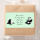 Two cute black and white pandas dining on bamboo shoots, followed by your name and address or any other message of your choice