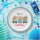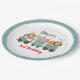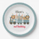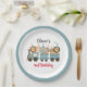 Celebrate any occasion with this adorable personalized paper plate featuring a delightful safari train! A cast of whimsical safari animals, each sporting a festive party hat, chugs along on a charming train. These plates are perfect for adding a touch of fun and personalization to your next birthday party, baby shower, or any gathering.