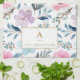 Cute Pastel Blue Watercolor Flowers Monogram Kitchen Towel