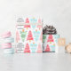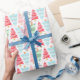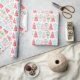 Wrapping Paper featuring cute colourful pink and pastel Christmas tree pattern on the white background. Easily personalize the text. - Kate Eden Art.