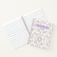 This adorable notebook features a fun, whimsical pattern of little girls, icecream cones, paintbrushes, lions, and feathers in a light pastel rainbow colour scheme. Great for Back to School! Easy to personalize for a great gift! The back contains simple diagonal white stripes over a matching lavender purple.