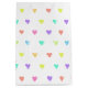 A cute and trendy pattern of hearts in a rainbow of bright pastel colours. Bright pinks, aquas, blues, purples and orange decorate the canvas.