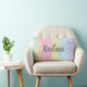 This cute girls' throw pillow features multicolored pastel tie dye stripes, along with a text template for easy personalization!