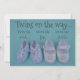 Beautiful color/colour photograph of two sets of cute white baby shoes on a pale teal background. One pair has a sweet motif of pale blue cats. The other, cute little pom poms. The message reads” Twin on the way... Twice the work, twice the fun, twice the love!” Perfect for a gender neutral set of twins pregnancy announcement, baby tea party invitation or shower invite. I created a cute pastel spots/polka dots pattern for the back. The back is also fully customizable so you can enter all your information in a flash! I try to create designs that are modern and original yet fun, cute and quirky.