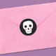 These cute stickers feature a hand drawn skull, with pastel pink and purple accents. The background colour is shown in black, but it can be customized to any colour you'd like! Great for use as envelope seals, cupcake toppers, and more! Great for a kids' Halloween or birthday party!