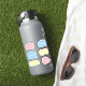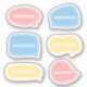This design features sweet pastel speech bubbles with personalized name in white modern sans serif font style.