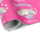 Cute Pastel Unicorn & Sparkly Rainbow on Hot Pink Wrapping Paper