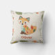 This personalized throw pillow features a cute, whimsical fox created in a patchwork style. The fox is designed with a mix of colourful, patterned fabrics, including polka dots, stripes, and leafy textures.