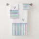 Cute Pattern Colourful Stripes Pink Blue Monogram Bath Towel Set