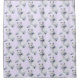 A shower curtain with a watercolor image of a white fox with fancy blue flora designs all over its fur.