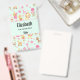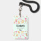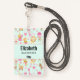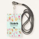 Personalized name badge with a whimsical pattern featuring a collection of delightful children's toys and animals.