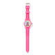This watch has a whimsical vector illustration design with a cute Owl on a branch and leaves. The owl is decorated with hearts as well as floral and geometric patterns (polka dots, chevrons). The striped background has soft pastel colours. The colours are pink, purple, green, blue and yellow. The clock circles (in stead of numbers) are a template object. If you like the watch more withour them just delete this layer. This product also can be customized by adding text