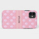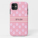 Trendy cute white paw pattern and editable text on pink background iPhone 11 Case.