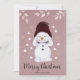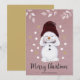 Cute Peaceful Snowman Pink Christmas Holiday Card