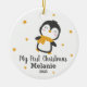 Cute penguin baby's first christmas on white ceram ceramic ornament