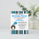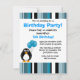 Cute Penguin Birthday Blue Stripe Party Invitation