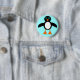 This fun Christmas button features a cute penguin character with a white tummy, big blue eyes with black pupils and cute orange feet and beak. This charming little winter bird is sure to delight children and adults. The penguin sits on an icy pale blue background to remind him of his chilly Artic home.
