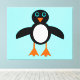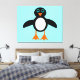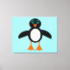 This awesome canvas print features a cute penguin character with a white tummy, big blue eyes with black pupils and cute orange feet and beak. This charming little winter bird is sure to delight children and adults. The penguin sits on an icy pale blue background to remind him of his chilly Artic home.