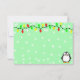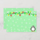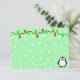 A cute black and white penguin drawing. Baby animal blank note cards. Green holiday themed version with snow. Gift idea for kids.