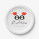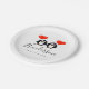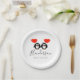 Cute penguin couple cartoon paper wedding Plates. Elegant wedding day party supplies for bride and groom, married couple, husband and wife or newlyweds. Chic script typography design template. Add your own surname and established date of marriage. Custom disposable party supplies for garden party and more. Also great for bridal shower BBQ.
