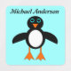 This awesome sheet of kids clothing labels features a cute penguin character with a white tummy, big blue eyes with black pupils and cute orange feet and beak. This charming little winter bird is sure to delight children and adults. The penguin sits on an icy pale blue background to remind him of his chilly Arctic home. There is custom text so you can include the name of your child.