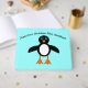 This beautiful guestbook features a cute penguin character with a white tummy, big blue eyes with black pupils and cute orange feet and beak. This charming little winter bird is sure to delight children and adults. The penguin sits on an icy pale blue background to remind him of his chilly Arctic home.