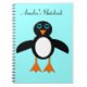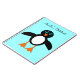 This awesome notebook features a cute penguin character with a white tummy, big blue eyes with black pupils and cute orange feet and beak. This charming little winter bird is sure to delight children and adults. The penguin sits on an icy pale blue background to remind him of his chilly Artic home. There is customizable text on the notebook cover allowing you to personalize it for yourself or turn it into a fantastic gift for someone else.